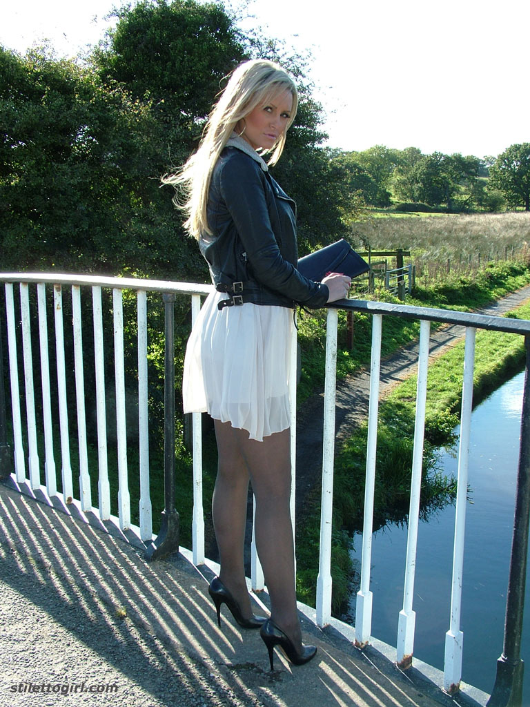 Женщина недавно разошлась со своим любимым мужем. Чтобы не грустить дома в одиночестве, мамочка решила немного пройтись по свежему воздуху. Она одела красивое белое платье и обула туфельки на высоких каблуках. Подойдя к мостику, тетенька вдалеке заметила симпатичного парня, она принимает самые трогательные позы, желая познакомиться с новым любовником.