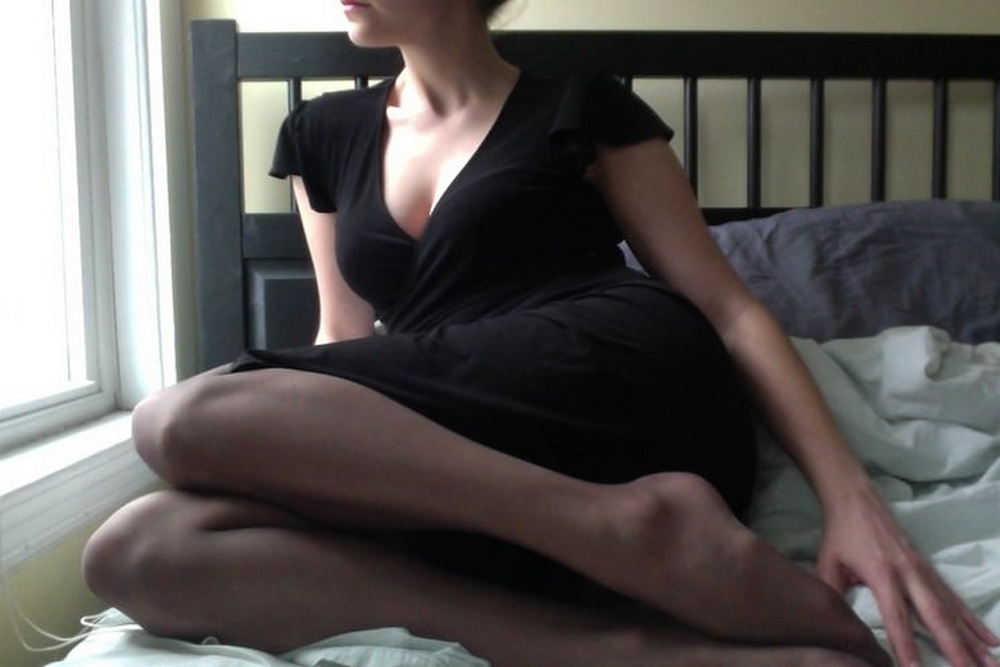 Сексуальная леди в красивом черном платье залезла на кровать и начала позировать перед своим мужчиной. Она пока что не доверяет партнеру, поэтому и старается не показывать свое лица. Девушка ведь не знает для каких целей партнер ее фотографирует. Она снимает с себя платье и начинает позировать уже в нижнем белье, пытаясь поласкать свою киску.