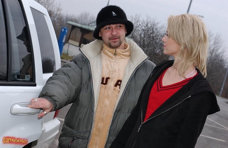 Пара мужиков заметили на дороге голосующую тёлку, которая демонтировала свои стройные ножки. Заценив фигурку тёлки, они решили подвезти её до траходрома, где она хорошенько их обслужила. Блондинка приехав на место сразу принялась отсасывать два члена, перед тем как они начнут ебать её во все щели.