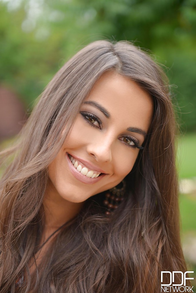 Девка с маленькими сиськами ласкает себя во дворе