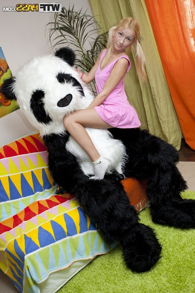 Няшная блондиночка с косичками развлекается со своей большой и живой игрушкой. Деваха всегда любила плюшевые игрушки и с возрастом её пристрастия не ослабли, только теперь эта девица использует их немного других целях... более непристойных и развратных)