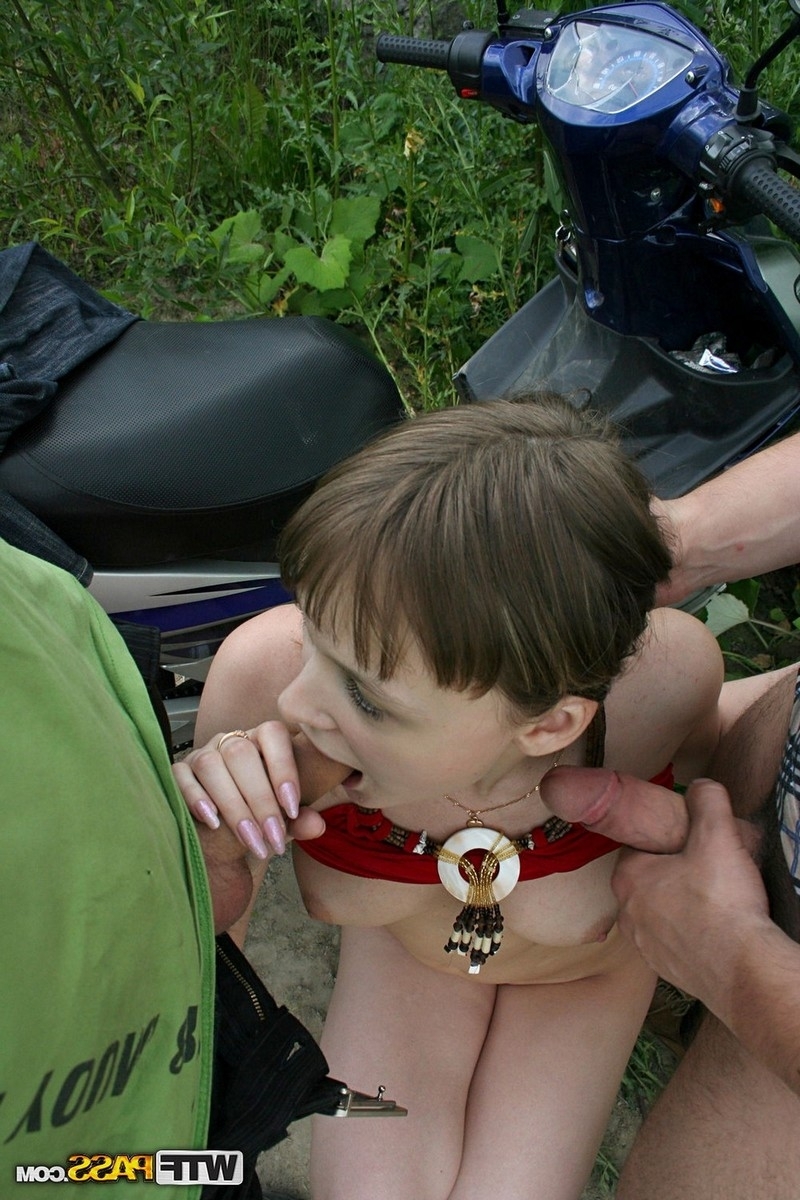 Русский пикап-мастер подцепил очередную дурашку и вывез её в укромное местечко за городом, где и обкатал девку, пока его корефан снимал их на камеру, периодически подставляя тёлке свой член для минета, пока её киска принимала в себя ещё одни стояк, яростно орудующий внутри...