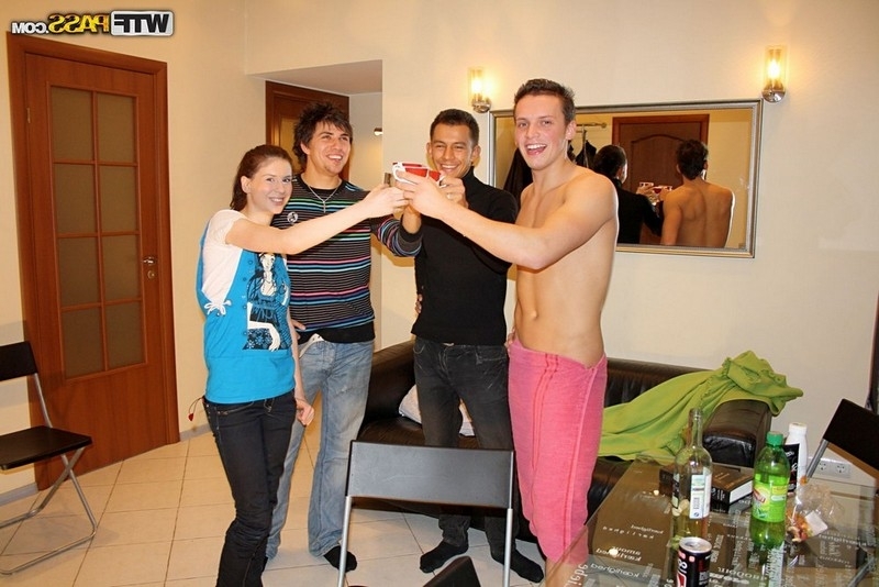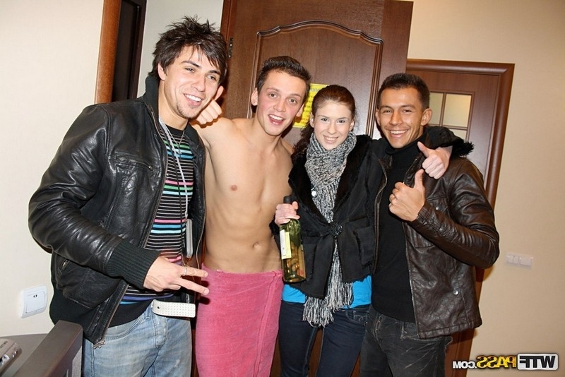 Парень зная о пристрастиях своей подруги к членам и её неудержимое желание трахаться привёл девку в гости к своим корешам, которые помогли ему по дружески трахнуть его тёлку. Ненасытная нимфоманка жадно отсасывала несколько членов и только успевала стонать пока парни пороли её по очереди.