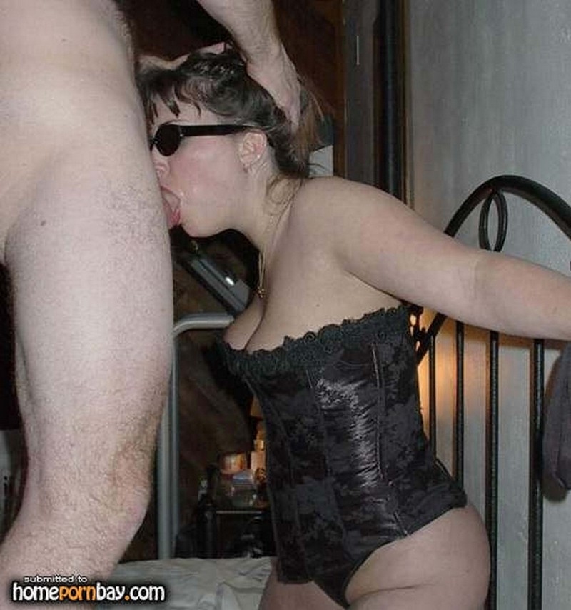 Кадры развратного домашнего секса зрелой супружеской пары. Мужик грубо и бесцеремонно сношает глубоко в глотку свою послушную и горячую супругу. Женщина прикованная наручниками к кровати и с завязанными глазами жадно глотает стояк благоверного принимая его в рот по самые яйца.