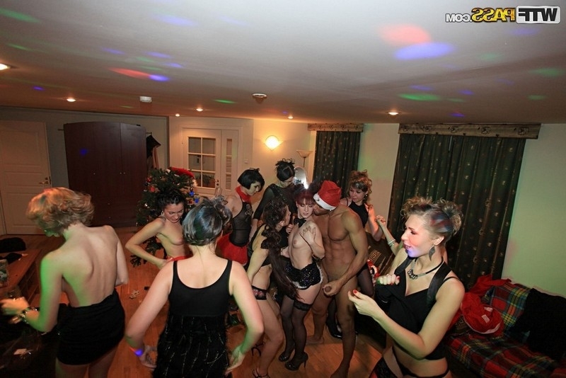 Жаркая новогодняя оргия с молодыми и пьяными тёлками готовыми на всё. Девки игриво вертели прелестями перед парнем, всячески стараясь его спровоцировать на секс и вскоре добились этого. Затем к их горячей тусовке присоединился чернокожий дед Мороз со здоровым чёрным членом и помог отодрать молодых хотелок.