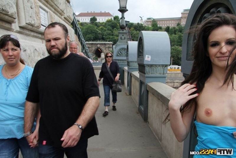 Развратная девица без комплексов открыто демонстрировала голые сиськи в городе, не смущаясь взглядов случайных прохожих, а наоборот ещё сильнее возбуждаясь, после чего повела своего спутника в уединённое место. Заводная подружка быстренько возбудила парня минетом и встала на четвереньки, прося засадить в её влажную щёлку.