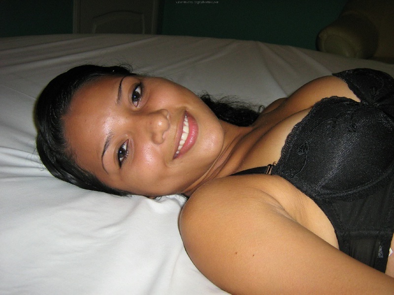 Смуглая девица раздевается перед бойфрендом на кровати и другие порно фото: