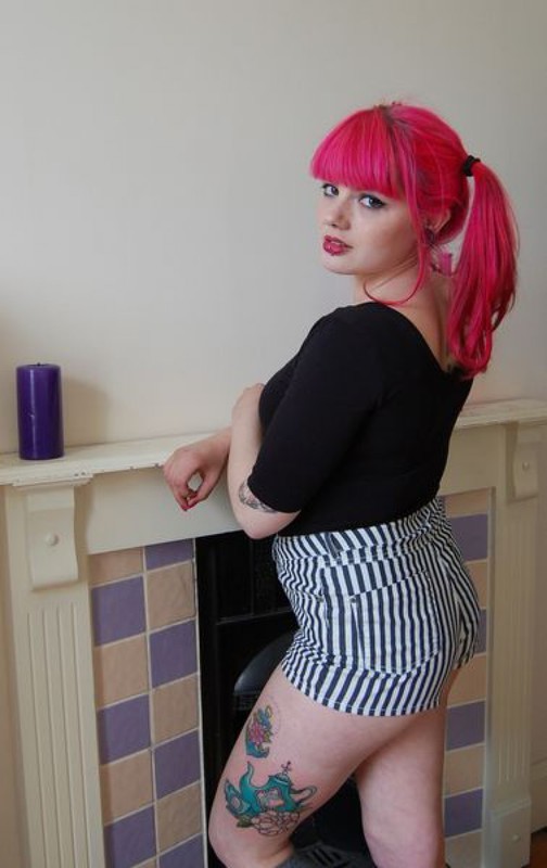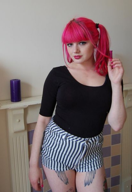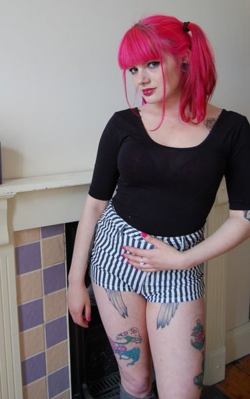 Любительница татуировок разрисовала узорами все свое тело. Чтобы показать рисунки для поклонников искусства, ей пришлось снять одежду. Когда девушка осталась в одних носочках, мужчины смогли увидеть разноцветные татуировки, а также рассмотреть пирсинг неформалки, которым она не преминула похвастаться во время своей домашней эротической фотосессии.