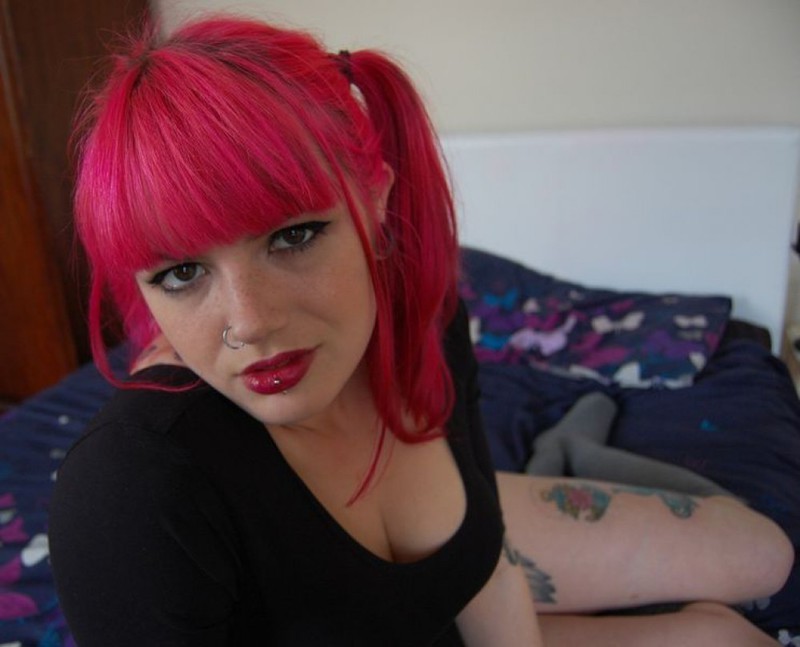 Татуированная неформалка отдыхает у себя в комнате