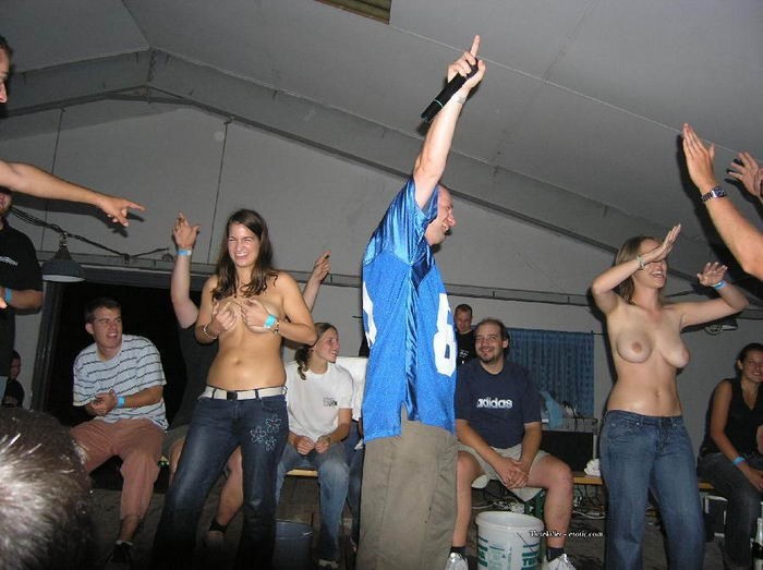 Эта вечеринка, на которую пришли сотни парней и девушек, переросла в настоящее эротическое игрище. Забавные конкурсы, алкоголь и развлечения уговорили парней раздеваться прямо на глазах других людей. Девушки без стеснения снимают лифчики, позволяют лапать себя за груди и писечки. Парни же снимают трусы и показывают свои формы. Гости явно останутся довольны этой вечеринкой!