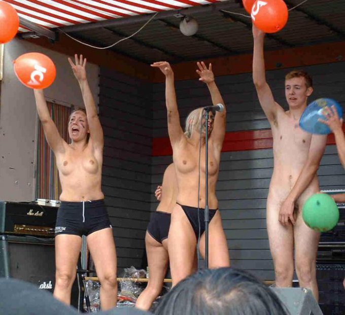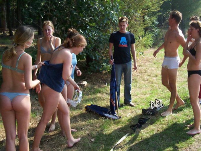 Дамочки, увлекающиеся нудизмом, давно забыли о всяких условностях и без проблем избавляются от одежды в веселых компаниях единомышленников. Подружки с фигурами различной стройности обнажились на фоне большого дерева в вечернем парке. Они игриво прикрывают сиськи разнообразных размеров и лобки, не скрывая знойных бедер и роскошных ягодиц, вызывающих похотливые мысли.