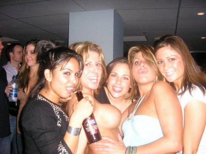 Когда в разгоряченные головки красавиц, развлекающихся на буйных вечеринках, ударяет хмель, они совершенно теряют голову и выкидываю неожиданные экстравагантные номера. Распаленные весельем подружки, нисколько не стесняясь окружающих, задирают одежду и выставляют напоказ свои соблазнительные сиськи, позволяя насладиться картинкой всем желающим.