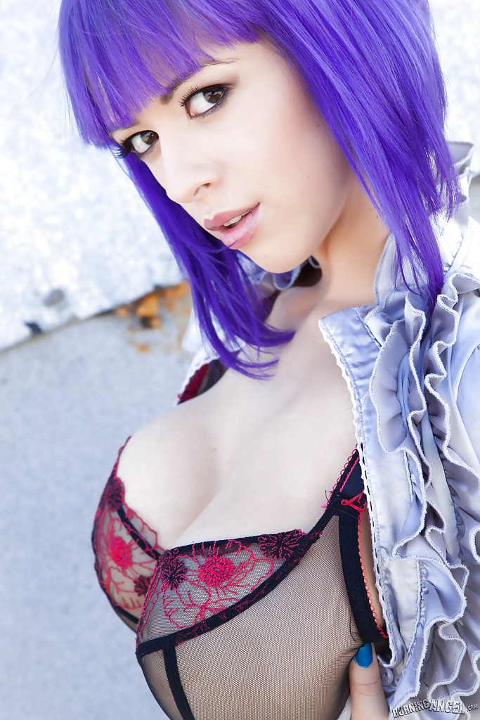 Сексапильная уборщица с синими волосами показала сиськи и вагину