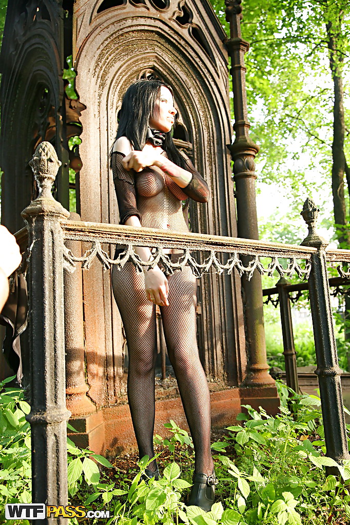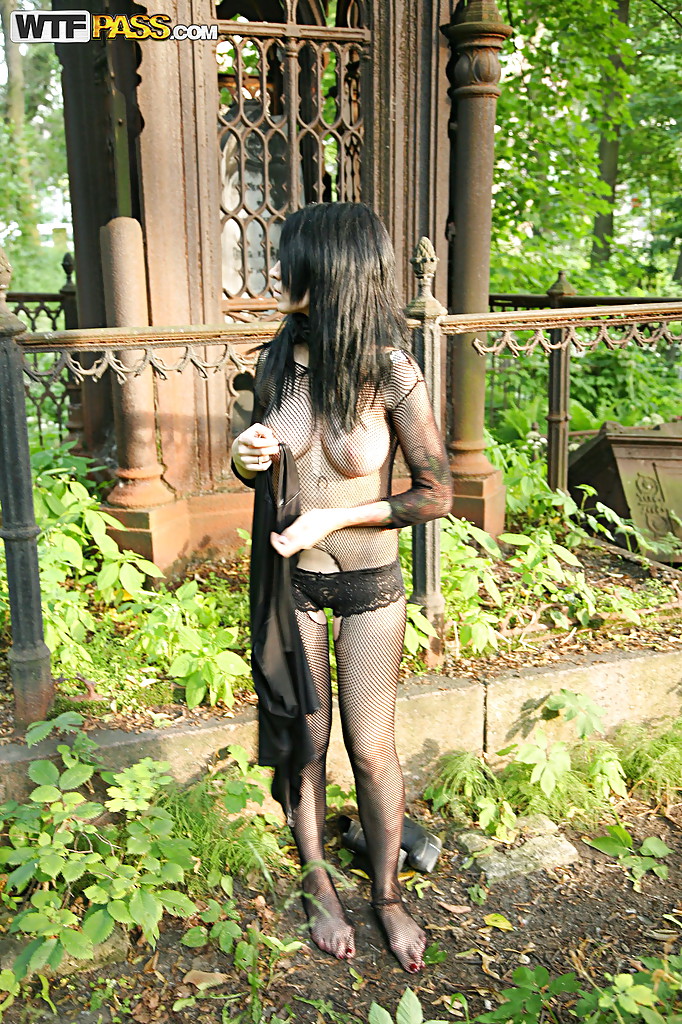 Трагическая история произошла ровно год тому назад с мужем этой двадцатилетней брюнетки. На годовщину вдова посетила кладбище, чтобы поговорить с душой любимого человека. От переизбытка эмоций девушка принялась… раздеваться. Сняв с себя трусики, она стала представлять, как супруг, снова живой и невредимый, овладевает её сладкой кисулечкой, шепча на ушко приятные комплименты.