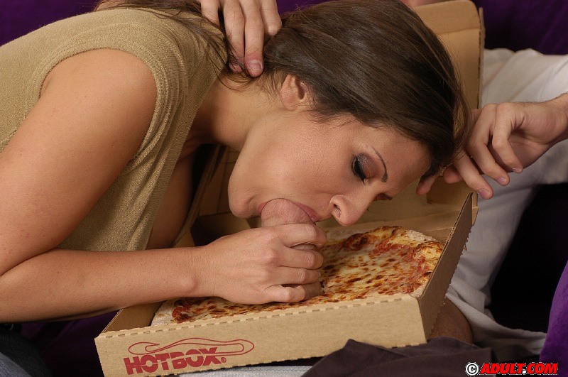 Когда доставщик пиццы появился у порога, то домохозяйка обнаружила, что у нее совершенно нет наличных денег, чтобы заплатить за доставку вкусняшки. Поэтому она решила выбрать более интересный путь и заманив доставщика пиццы к себе домой, девушка принялась отсасывать ему. Парень блаженствовал, пока красотка терзала своим ротиком его огромный пенис, и даже бурно кончил ей прямо в рот.